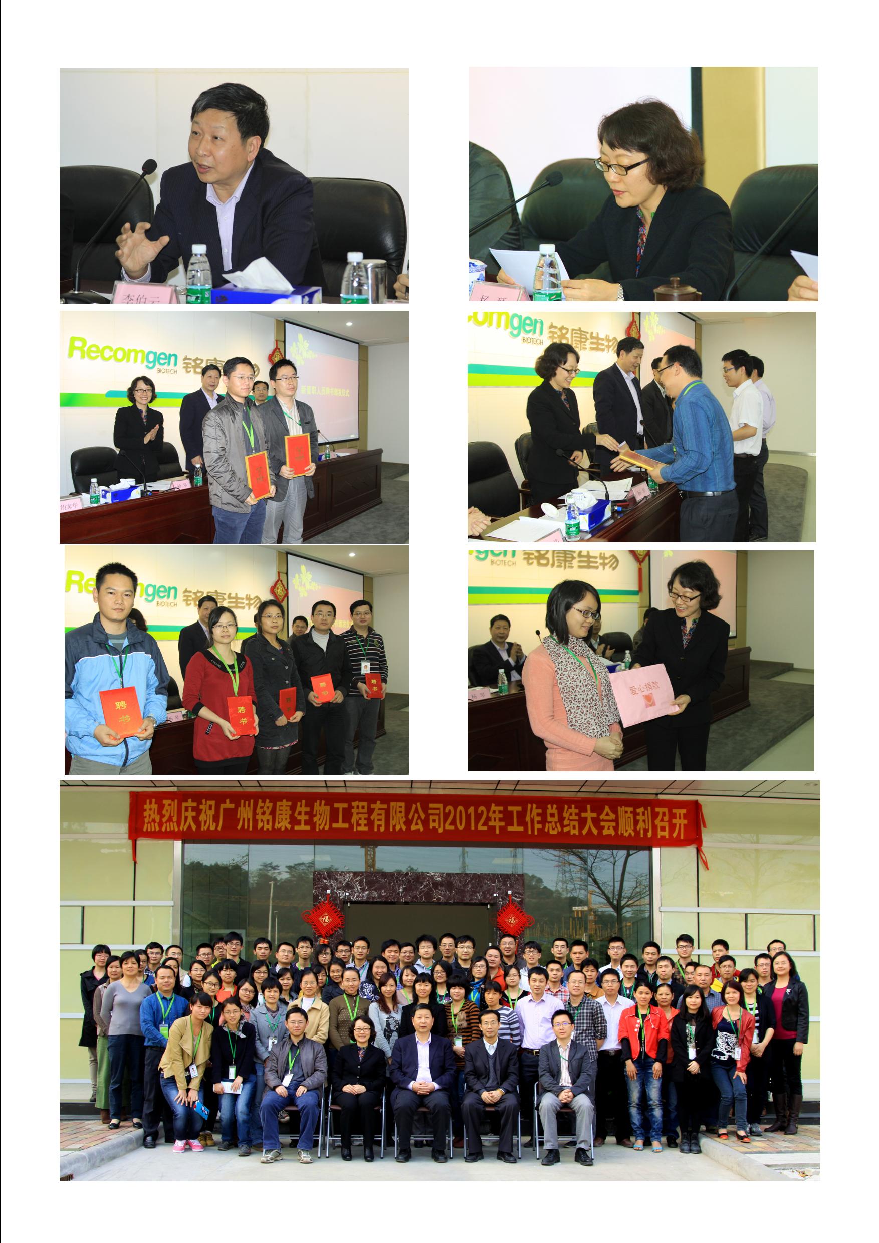 楊琴總經理在會上做了題為《謀篇布局,推動產業化布局建設;蓄勢待發,開啟企業發展新篇章》的工作報告,報告全面、客觀地反應了公司2012年的主要工作,并對2013年的工作做出了方向性的闡述。2012年,公司以實現銘復樂®產業化為中心,以廠房建設和生產工藝建立為主線,完成了生產廠房建設,成功實現了生產規模的工藝條件,初步建立了生產技術團隊,完善了質量管理體系,進行了未來產品線的規劃,落實了服務于生產的行政事務管理,為公司2013年申請“三證”工作夯實了基礎。2013年,公司將繼續以廠房建設和工藝放大試制為核心,在上半年完善廠房建設以完成工程驗收;加快試產進度,實現工藝放大試制;做好“三證”申請的準備工作;建立激勵與約束機制以提高工作效率;加強團隊建設以提高執行力;加強人員培養以保障生產需求;加強研發力度以豐富產品線。