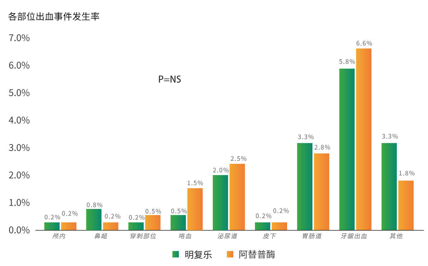 安全性結果顯示:明復樂出血風險低,安全性與阿替普酶相當